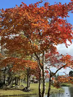 During fall foliage season, you can enjoy a vibrant display of fall foliage. 🍁 The view of Mount Yotei from afar is truly breathtaking. The snowy landscape of Mount Yotei against the sun-drenched blue sky is truly breathtaking!