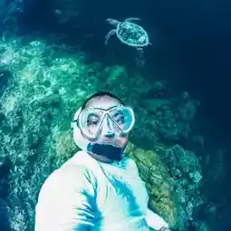 Taking a selfie with a turtle