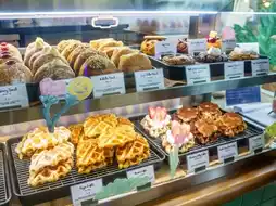 With a variety of flavors beautifully displayed, choosing your donut becomes a joyful experience.