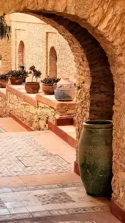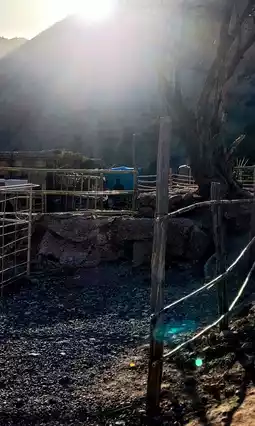 The village we stayed in is located on top of a mountain near the Atlantic Ocean, about a 30-minute drive from Agadir. We chose it to save on accommodation costs (about 20 euros per night, with a mini kitchen) and to avoid the crowded city center (Agadir is a great place to spend the winter in cold Europe). Standing behind the village, you can see the endless brown mountains, with sparse trees growing on them. The branches are covered with long, hard thorns, and if there are leaves, they are densely packed against the branches, like the small curls on a black person's head. The most important principle of the structure is to save water!