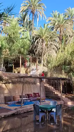 Riding from the village into the vast mountains, you will reach Paradise Valley after an hour of winding roads. Paradise Valley is not as beautiful as its name suggests, like a paradise, but it is actually an oasis in the barren mountains. The oasis is full of lush coconut trees and reeds, and the river is like a big-headed tadpole with a long tail, with most of the water source concentrated in the head and getting smaller and smaller as it goes back. Although the oasis is not spectacular, it stretches for several kilometers. In the old days, how many people and animals did this oasis save? How much hope did it give them to keep living? In this sense, it is not an exaggeration to call it "Paradise Valley."