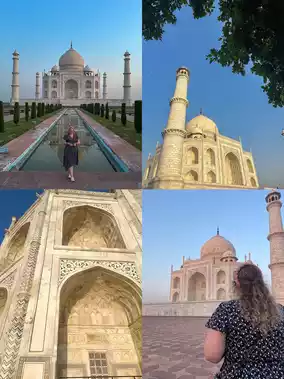 🌅 The next morning, we got up bright and early before the sun rose. Our guide picked us up from the hotel and brought us to the Taj Mahal, where we got early access and the opportunity to get stunning sunrise shots with minimal people. Our guide was well-versed in the best photo opportunities and poses, resulting in unforgettable pictures and memories. She also happily provided us with the history of the Taj Mahal.