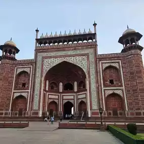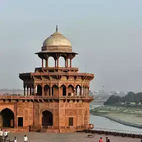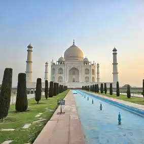 Meaning the Crown of the Palace, is a mausoleum built entirely of ivory white marble. Located on the southern bank of the Yamuna River in Agra, Uttar Pradesh. The Taj Mahal began construction in 1632. The Taj Mahal consists of a mausoleum building, a mosque and a guesthouse surrounded by gardens. The construction of the Taj Mahal was completed in 1643.