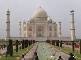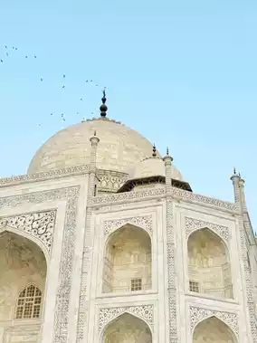 The Taj Mahal is a magnificent mausoleum located in Agra, India, renowned worldwide for its beauty. Built in the 17th century by Mughal Emperor Shah Jahan for his beloved wife Mumtaz Mahal, this structure is characterized by its beautiful marble carvings and intricate inlay decorations.