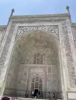 The architectural style of the Taj Mahal combines elements of Indian, Persian, and Islamic architecture. Its unique white marble structure and exquisite decorative details make it a world-renowned architectural masterpiece. The main body of the mausoleum is made of white marble, with a huge double-shell dome on top and a slender white marble minaret at each corner. At the south end of the mausoleum, there is a mosque and a guesthouse, which are in harmony with the architectural style of the mausoleum.