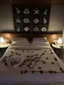 I'm unsure how to briefly capture our stay here, but if I had to choose one magical word, it would be DREAMY! We hail from Santorini, Greece, which (in our opinion—mine and my wife's) is the world's most beautiful island. However, the love island (lobogili translation) is truly a slice of paradise on earth! We spent only five days here as it capped off a long journey, and it certainly wasn't enough, but we tried to make the most of it! Upon arrival, the sax player's melody welcomed us, paired with a red rose and endless smiles from the warm staff. We were led to the main bar, offered drinks, and given refreshing towels, which we absolutely needed! Rinki was our island hostess, and she was the sweetest person we could have hoped for—attentive, kind, accommodating, and genuine. She guided us around the island before introducing us to our room.Our water villa was simply stunning! Enjoying dinners and towels on the balcony, a spacious bathroom with open air views from the bathtub, robe, slippers, a broad array of amenities, and a bedroom we couldn't stop admiring! This trip celebrated our 10-year marriage anniversary, combined with the honeymoon we hadn't previously had, so the staff beautifully decorated the bed with rose petals and greenery saying Happy Anniversary to us, which was soooo sweet � Rinki even presented us with a delicious happy anniversary cake!The staff at the bar, restaurant, and on board during boat activities (sunset cruise & fishing tour) were the kindest humans! They went above and beyond with nothing but smiles on their faces. Since we work in tourism in Santorini, I confidently say these folks were truly, genuinely polite and soft-hearted!The food was I N C R E D I B L E!!! Just wow!!! Breakfast offered everything imaginable—different cuisines making choosing a challenge, often leading us to overeat! Lunch presented endless options (salads, starters, sides, desserts) with daily dish updates offering at least 3-4 choices! Dinners were another delight—you'd pick salads, sides, and desserts from the buffet, and the main from the a la carte menu that was unique daily!We enjoyed diverse dining including one meal at the restaurant, one at the beach canteen, an underwater restaurant experience at blu, and a private beach dinner following our vow renewal ceremony. Feelings were intense and emotional, making the day unbelievably memorable. The ceremony was beautiful, adorned with splendid flowers, escorted by two drummers, and the incredibly sweet celebrant reading our vows. Every detail was meticulously arranged by the brilliantly talented Arti, who was a joy to have around and impeccably perfect in arranging everything for us.We didn't want to leave, especially after all the special moments on the island of love! Each department and staff member, including those providing the indulging massages, was truly amazing, hard-working, pure-hearted individuals. Highly recommended, and we're hoping to return someday for a longer stay!