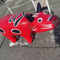 In front of the castle, there is a big Akabeko (a papier-mâché local toy from the Aizu region of Fukushima Prefecture). "Beko" means "cow" in the Tohoku dialect🐮