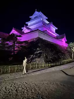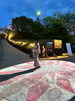 Tsuruga Castle IlluminationNot only is the castle lit up, but there are also many photo spots such as petals flowing on the castle walls, poles made of washi paper, and a rotating flower entrance😊 The lit up castle was fantastic and a healing space🥺It was a Saturday, but there were few people, so it's a hidden spot where you can avoid the crowds and enjoy it! The castle tower will also be renovated on 2024/4/28!