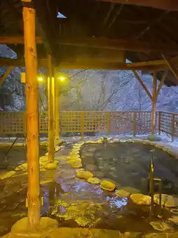 The open-air baths here are rare nationwide, and are arranged in tiers facing the valley, known as "Shikibutai Tanada."