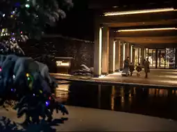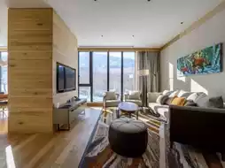 As soon as you step into the lobby, you're greeted by a warm color palette 🔥 and natural wood textures 🪵 that create an Alpine atmosphere. The massive glass windows bring the pristine powder snow scenery 🌨️ indoors, instantly elevating the vacation vibe.