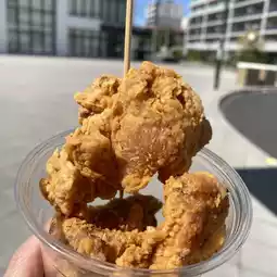 The food-walking cup contains two pieces of thigh and two pieces of breast meat and costs 450 yen. It is piping hot because it is fried after ordering. You can also call in advance. This fried chicken specialty store is also recommended for lunch.
