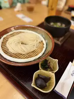 The menu offers a wide variety of Akita-style combinations, including hot and cold udon, tempura, Hinai Jidori chicken, and kiritanpo. The smooth and silky noodles are perfect for a mid-day lunch. Dried noodles and gift sets are also available for purchase in the souvenir corner.