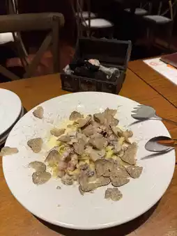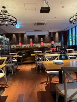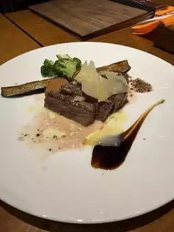 The stylish interior, featuring warm wooden accents, includes a wine cellar stocked with a selection of wines directly sourced from the Ascheri Winery in Piedmont, Italy. Perfect for anything from casual lunches to celebratory dinners, the restaurant strikes a balance between comfort and elegance.