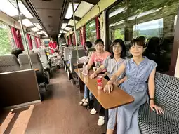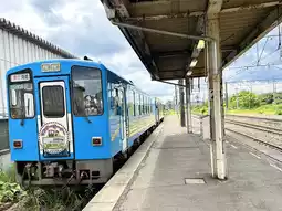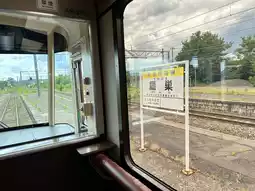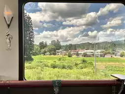 The train is a small, two-carriage train with large picture windows, allowing every traveler to fully enjoy the scenery as the train slowly moves along! When the train passes through a cave, you can stand at the rear of the train to admire the winding track and cave. #AkitaInlandLine