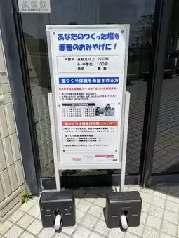 You can learn about salt fields from a salt artisan, and it's an experience that adults can enjoy as well. A clay pot filled with seawater from the salt fields is prepared on the stove, and in 20 minutes of experience time, it transforms into snow powder-like salt. Photography was not allowed while the fire was lit. As it gradually became salt, cheers arose from each group. It is also recommended for educational purposes, but there is a condition that adults must accompany, so please be sure to check the official website. You can experience it for free when you enter the Marine Science Museum located in a corner of Ako Seaside Park.
