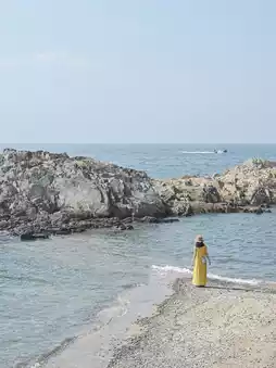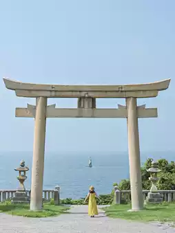 This slope leads from the grounds of "Iwatsuhime Shrine," famous for matchmaking, to the sea. The view of the ocean from beyond the shrine's torii gate is also stunning, so it's definitely a must-see! ✨