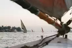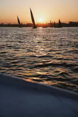 As the sun gradually set, the sky was dyed a gorgeous orange-red, and the Nile River became even more dreamy and charming. The distant sailboats turned into black silhouettes, and the ropes sparkled with a unique light in the afterglow of the setting sun. Occasionally, the boatmen's passionate singing and bursts of laughter came from the boats, which was the joyful expression of the tourists immersed in this wonderful atmosphere.