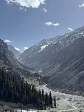 Ala-Archa National Park was the first national park established in Kyrgyzstan in 1976 and is located about 40 km from Bishkek. Ala-Archa means cedar, and it is said that the name was given because there are many cedar trees in the national park. The local travel agency Ketik recruited people for a half-day tour because it is close to the city and the trekking course is easy.
