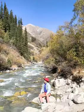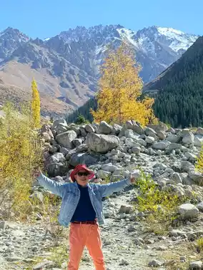 Starting from the park entrance, the path underfoot winds along the Ala Archa River, and the starting altitude of 1,500 meters makes breathing especially smooth. At 9 a.m. on September 25, 2025, the sunlight poured down in an almost luxurious way. As a travel enthusiast, I have seen many autumn scenes, but Ala Archa’s autumn has a breathtaking grandeur. The primeval forests on both sides of the valley are quietly changing colors; pine needles still hold deep green, while poplars have turned light yellow. The wind rustling through the leaves, mixed with the babbling of glacier meltwater, forms the most natural "sports ground."