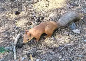 Just as I was immersed in the grand geological scale, a faint rustling sound brought my attention back to the present. At the root of a spruce, a brown-gray, bushy-tailed little squirrel was cautiously watching me with bright eyes. Its tiny paws held a pinecone, which it was quickly nibbling. I immediately stopped, afraid to disturb this native resident.