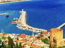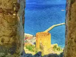 From this leafy vantage point you’ve got the best view of the castle’s peninsula, the tessellated white blocks of modern Alanya, as well as the harbour and the aqua-blue expanse of the Mediterranean.