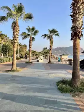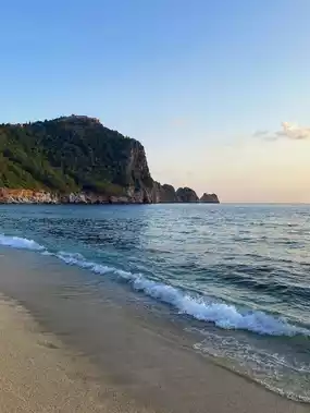 Kleopatra Beach is located in the center of Alanya and stretches for 2.5 km from the Damlatas cave to the Dinek observation deck. The beach is covered with light coarse sand. The water is blue and clean. Near the coast the sea is shallow, but after a few meters becomes deeper.