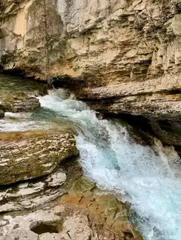 The mist from the falls creates a refreshing coolness, especially on warm days, while the surrounding forest adds a sense of calm and serenity. Birdsong and the gentle roar of water combine to create a relaxing natural soundtrack. The hike is suitable for most visitors, making it an ideal adventure for families and nature lovers alike. Johnston Canyon Lower Falls is not just a waterfall, it is an immersive experience that showcases the raw beauty of Alberta’s wilderness in an accessible and unforgettable way.