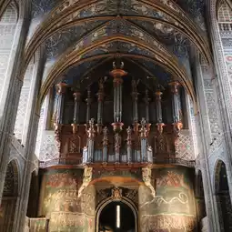 Albi is a town on the Tarn River in southern France, northeast of Toulouse. Dominating the skyline is the 13th-century, red-brick Sainte-Cécile Cathedral, a Gothic landmark with large interior frescoes such as the dramatic “Last Judgment.” The centuries-old Palais de la Berbie houses the Musée Toulouse-Lautrec, honoring the Albi-born painter. The Fashion Museum, in a former convent, shows 18th–20th-century costumes.