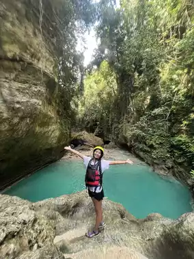 Kawasan falls cebu Philippines If you visit once, you will never forget this experience. The blue waterfall is long and takes at least 4-5 hours of adventure. If you come, you will definitely love it. But you can't come by yourself. You need a guide. You have to buy a tour. The price is 1500 pesos per person. I must say that it is worth the money you pay. #TravelAbroad #Travel #Waterfall