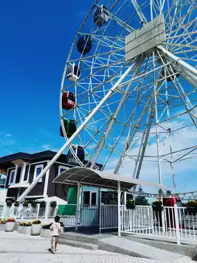 3️⃣There is also a beverage shop🥤 on the same side of the Ferris wheel. It is open-air, with seating and awnings, and you can enjoy the mountain view⛰️