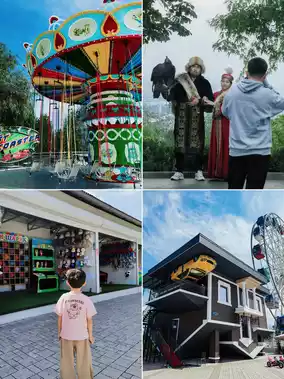 🔸Upside Down House🏠: An upside down building next to the Ferris wheel. You can take off your shoes to enter and visit. You need to buy tickets 🎫, 2500-3000 tenge. The price/performance ratio is not too high. We did not go in.