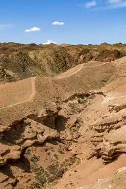 ๐โจ You can explore Charyn Canyon from the top along the boardwalk or venture deep into the canyon. We recommend walking a short distance on the top, then going down the stairs to the bottom of the canyon to experience the breathtaking scenery. The canyon is a masterpiece carved by the Charyn River. Although the river has long since receded, the strong winds from the Tianshan Mountains continue to shape the canyon.