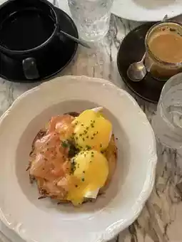 Charming Ambiance: The spacious café features a chic design, making it an ideal spot for leisurely breakfasts on the patio or casual meetings over coffee. As the day transitions to evening, the café transforms into a lively gathering place for wine and conversation.