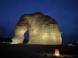 At night, Elephant Rock shines like the star of a grand stage, with its contours beautifully highlighted by lights, resembling a giant elephant with a long trunk standing majestically in the desert. Its breathtaking beauty from every angle truly makes it one of the most iconic natural landmarks in the AlUla region.✨