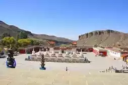 South Temple of Helan Mountain, located 30 kilometers southeast of Bayanhot in Alxa League, 120 kilometers from Yinchuan City, the entire tourist area is lush with trees, the temples are lofty, there are many historical relics, and the Buddhist culture atmosphere is strong. It is a scenic spot where cultural landscape and natural scenery are closely integrated. Moon Lake is deep in the Tengger Desert, turn into the road from the Left Banner to Yinchuan, you need to take a desert off-road vehicle to get in.