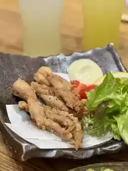 The chicken wings are thick and crispy on the outside! The taste is doubled when you add lemon.