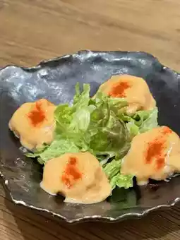 The plump shrimp is covered in a rich mayonnaise sauce, so I wonder if there were nuts in it? The texture is perfect and it's delicious!