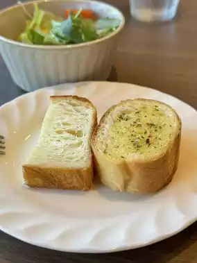 They served two types of bread: a softly sweet Danish and a fragrant garlic baguette.