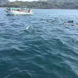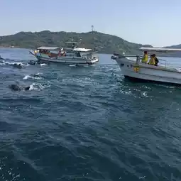 Amakusa dolphins live in the waters around Futae in Gowa-cho, Amakusa City. Meeting approximately 200 wild southern dolphins at sea is one of the most popular leisure activities in Amakusa. You can fully observe the swimming dolphins at a super close distance, as if you could reach out and touch them. Dolphin watching tours are available all year round, and the local area is proud to boast a dolphin encounter rate of over 90%. The best season for viewing is especially from spring to summer. Let's enjoy the comfortable sea breeze and watch the dolphins on the boat.