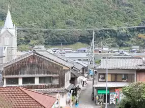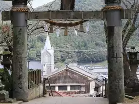 Built around 1934 during the time of Father Harvey, it is located in the center of the village overlooking the Sakizusuwa Shrine, and from the chapel's bell observatory park, it looks like it is floating on the Kawaura Bay in the background, so it is also called the Cathedral on the Sea. It is said. The spire rising in front is made of reinforced concrete, and the interior is mainly made of wood and has tatami mats, which is rare in churches.