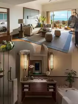 The hotel is built by the sea and boasts a large expanse of pristine white sand, as fine as flour. Push open the floor-to-ceiling windows of your room, and you'll be greeted by the salty sea breeze and the endless Indian Ocean. Whether you're on your room's balcony or lounging on a beach chair, you can take in the stunning ocean views. Every sunset is like a grand finale, painting the sky in shades of orange and red, breathtakingly beautiful.