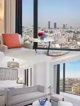 The hotel occupies a prime location in the heart of Amman, just a stone's throw from the ancient Citadel. On one side, you're surrounded by the rich history of millennia-old ruins, and on the other, the bustling energy of the modern city. Standing by the floor-to-ceiling windows, the panoramic city view and magnificent sunset are truly breathtaking. The Roman Theatre is within walking distance, offering a deep dive into history.