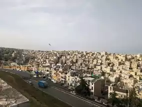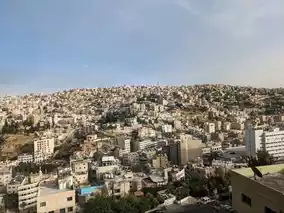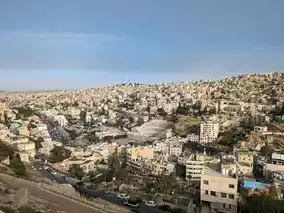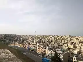From here you can see the whole city of Amman. Looking out, you can see that Jordan has houses that look like they're made of white sand.
