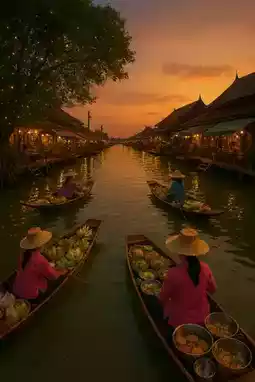 📍 Stroll along the canal, shop for souvenirs, and sample local cuisine. 📸 Capture beautiful photos from both clear daytime and golden evening light. 🛶 Take a boat ride to witness authentic Thai life, accompanied by laughter from friendly vendors.