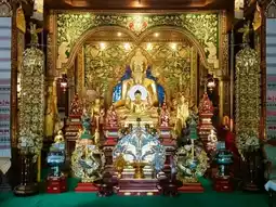 .. Luang Pho Phra Sri Ming Muang, the principal Buddha image of the temple. This stucco Buddha image is gilded and lacquered throughout, in the Chiang Saen Singh 1 style, over 400 years old.