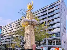 Feeling good and comfortable when walking along the side of the river , garden and city .