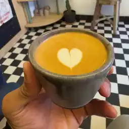 Nice and friendly staff. not sure about the food selection- pretty small variety and tastes pretty average. but love the decor and the vibes. The oversized, rounded, and heavy mugs perfectly complement the cafe's styling, adding to its artisan vibe. The staff are warm and welcoming, making the atmosphere even more pleasant.