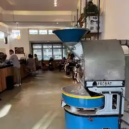 The americano was very good. Used some berry-fruity beans. The atmosphere is very cozy and warm. There are not that many places to sit though since it's quite busy. Natural light fills the warehouse-like interior, which has high ceilings, white walls and a mix of bar seating and cosy sofa areas. A long table in the rear is perfect for working.