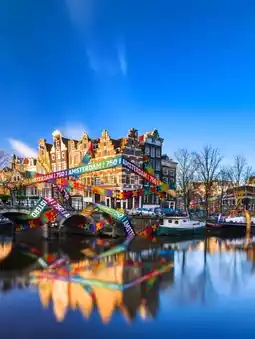Amsterdam is a vibrant and picturesque city known for its canals, historic architecture, and rich culture. Visitors can explore famous landmarks like the Anne Frank House, Rijksmuseum, and Van Gogh Museum, or enjoy the lively atmosphere of Dam Square and Leidseplein. The city is also famous for its bicycle-friendly streets, charming cafés, and beautiful tulip gardens. Whether you're cruising the canals, visiting world-class museums, or enjoying the nightlife, Amsterdam offers a perfect mix of history, art, and modern charm.