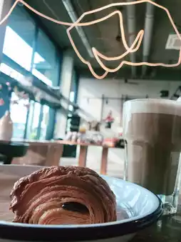 • I chose the pain au chocolat and cheese croissant. Vegan options are available for latte milk.